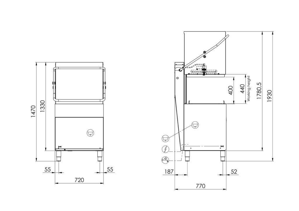 Abmessungen – (mm)( – L – T – H | 720x770x1470/1930h |